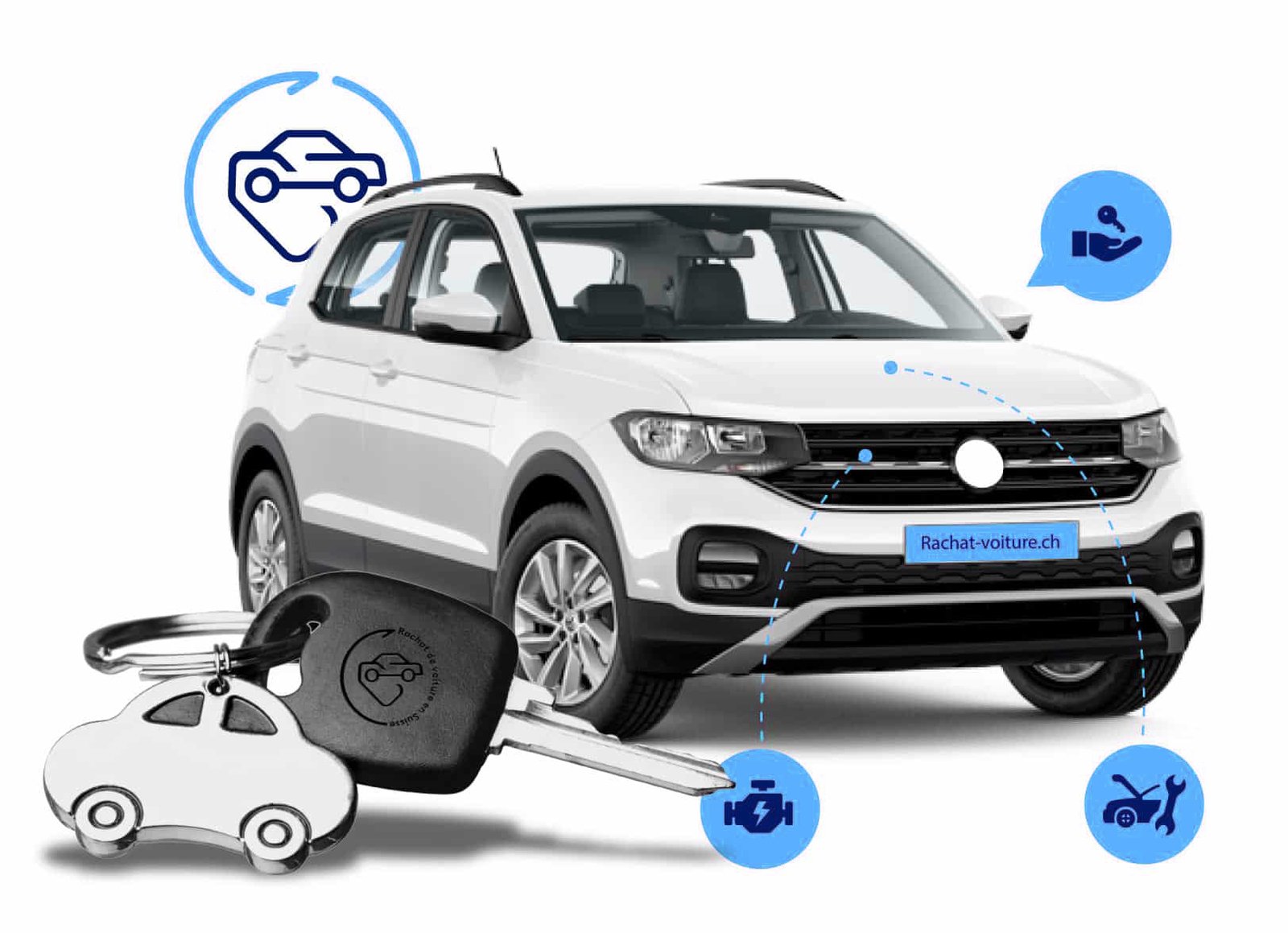 Si vous souhaitez vendre votre voiture rapidement et facilement, essayez simplement rachat-voiture.ch. Il est important pour nous que nos clients obtiennent la valeur maximale lors de la vente d’une voiture d’occasion. Économisez votre temps précieux et laissez-nous évaluer votre véhicule en quelques secondes – indépendamment de la marque, du modèle, de l’année ou de l’état.
